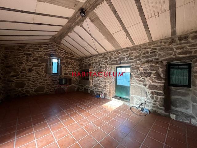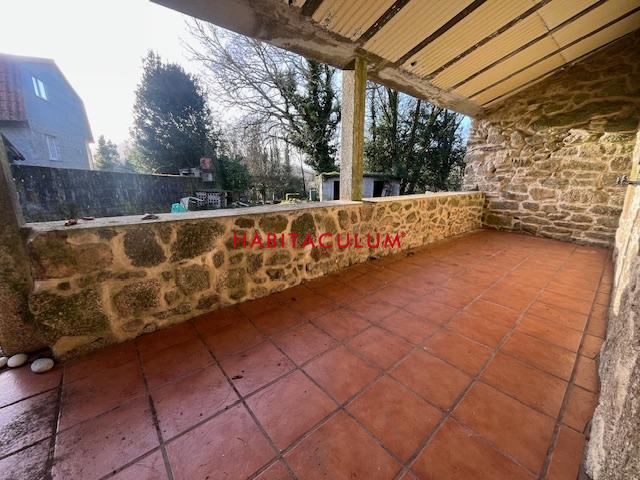 Vivienda de planta baja, de piedra país de mampostería, diáfana, con gran terreno de 2.600 m2. Finca cerrada totalmente con dos entradas. Buen acceso a la autovía a Vigo. Dispone de un precioso porche y una lareira de leña.